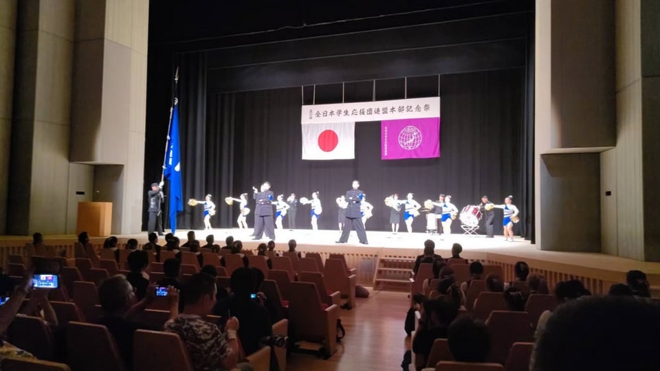 本学応援団は応援団部、チアリーダー部、ブラスバンド部の三部で活動しています。